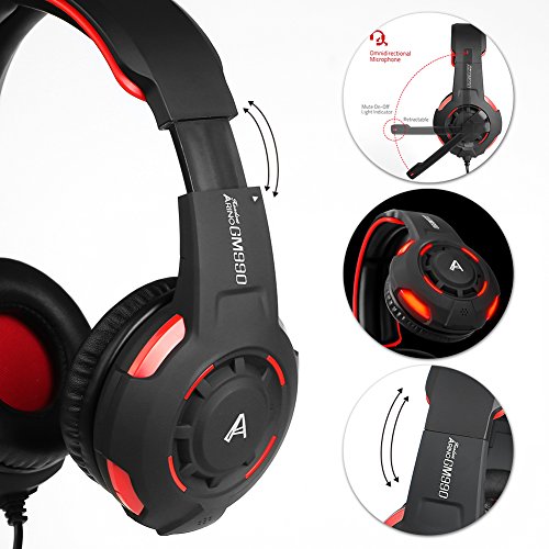 ARINO GM990 Cuffie Gamer Headset Gioco Video Cuffia con LED/per Cuffia Gaming Cablata Filo USB e 3.5mm Presa per iPhone6/6S/6Plus/iPad/XBOX One/PC Windows XP/7/8/8.1/10/Tablet Cellulare (Rosso)