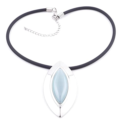 ARITZI - Elegante collana composta da ciondolo in pietra occhio di gatto e catena in gomma con 40 cm di lunghezza e 8 cm di estensione - Verde turchese