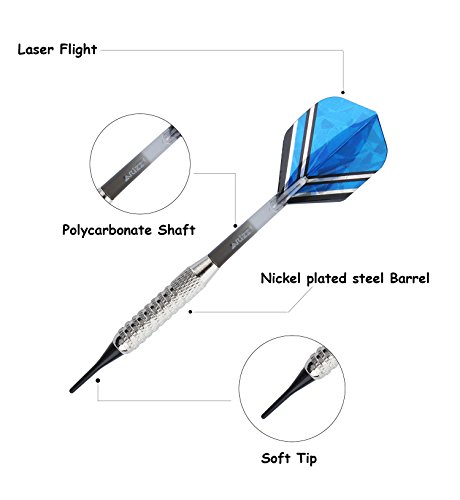ARIZZ 12 punti Freccette con punta in plastica e 12 Alette di Laser, 12 Alette a stile di Bandiera nazionale e 24 Punti di punta in plastica per Bersagli Elettronici