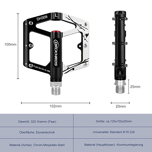 Arkham Pedali piatti MTB MTB a piattaforma con 3 cuscinetti sigillati, asse 9/16 pollici CNC in alluminio, per mountain bike, trekking, bici da corsa, e-bike, nero e bianco