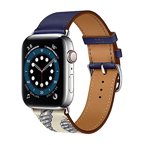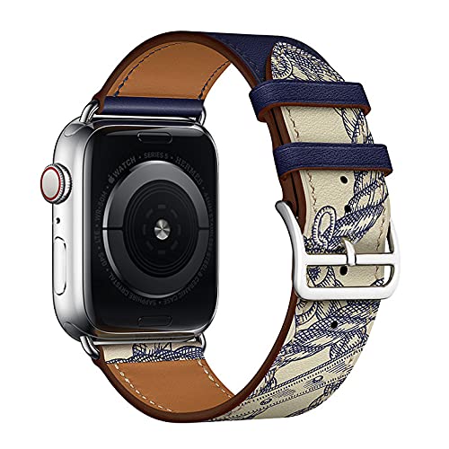 Arkrdiif Cinturini originali in pelle di ricambio compatibile con Apple Watch Cinturino 42mm 44mm 44mm in vera pelle per iwatch serie 7 6 5 4 3 2 1 SE (42mm/44mm/45mm, Blu+Bianco)