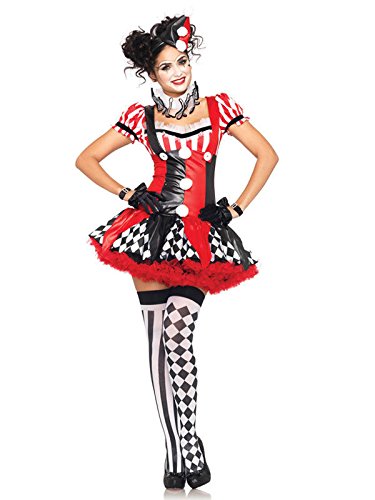 Ambito di fornitura: 1 Hot Arlecchino costume da donna pagliaccio black-red-white, incl. vestito, collare e cappello (senza guanti, sottogonna, calze e scarpe).