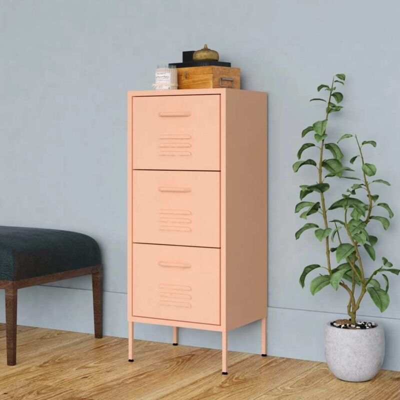 Questo mobiletto portaoggetti, caratterizzato da un design funzionale, è un elemento d'arredo che sicuramente attira l'attenzione nella vostra casa. Questo armadietto laterale, caratterizzato da una struttura in acciaio, è robusto e durevole. Sul fondo sono presenti dei livellatori per regolare l'altezza in base alle proprie esigenze. I cassetti possono essere completamente estesi e sono ideali per tenere tutti i tipi di oggetti più piccoli organizzati e a portata di mano. I cassetti con guide su cuscinetti a sfera garantiscono un'apertura e una chiusura fluide, anche in condizioni di carico elevato. Colore: Rosa Materiale: Acciaio Dimensioni: 42,5 x 35 x 101,5 cm (L x P x A) Altezza gambe: 15 cm Capacità di carico per cassetto: 20 kg Capacità di carico totale: 60 kg Dispone di livellatori sul fondo Cassetto con guida a sfere (3 sezioni) Il cassetto può essere completamente esteso Assemblaggio richiesto: Sì AVVERTIMENTO: Per evitare il ribaltamento questo prodotto deve essere
