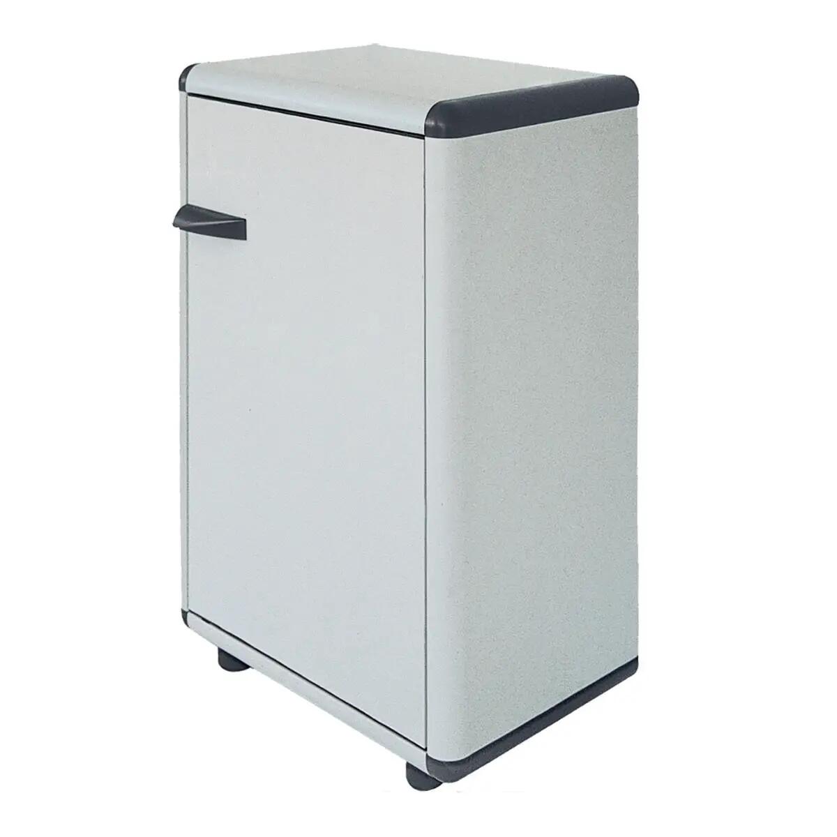 In resina. Ideale per garage, cantina balcone terrazzo e giardino. Semplice da montare. Lavabile. Resistente agli agenti atmosferici