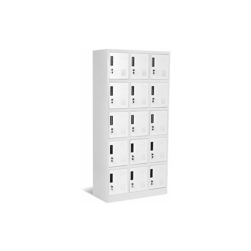 L' armadio metallico Carmen CR-1245 è stato progettato per lo stoccaggio di bagagli, scarpe e oggetti personali. E 'una scelta pratica per tutti i tipi di impianti sportivi, piscine, centri fitness, centro benessere, supermercati e centri commerciali. L'armadietto ha quindici scomparti con porte in metallo, ciascuno dei quali è bloccato con la propria chiave individuale. L'armadio Carmen CR-1245 ha uno sfiato nella parte inferiore di ogni porta che garantisce la ventilazione, in questo modo si garantisce che nessun odore umido rimarrà bloccato all'interno. Lo slot di ventilazione è una soluzione delicata ed elegante per assicurare una circolazione d'aria in uno spazio chiuso come l'armadietto. Ogni porta ha un'etichetta in alto a destra che consentirà ai titolari di avere il proprio spazio personale negli spogliatoi. L'armadio metallico Carmen CR-1245 è realizzato in metallo verniciato a polvere inossidabile che garantisce l'affidabilità e la sicurezza. Caratteristiche generali