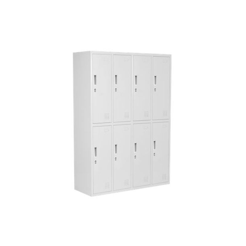 L' armadio metallico Carmen CR-1276 è stato progettato per lo stoccaggio di vestiti, scarpe e bagagli personali. E 'una scelta pratica per tutti i tipi di impianti sportivi, piscine, centri fitness, centro benessere, supermercati e centri commerciali. L'armadietto ha otto scomparti con porte in metallo, ciascuno dei quali è bloccato con la propria chiave individuale. L'armadio ha uno sfiato nella parte inferiore di ogni porta che garantisce la ventilazione, in questo modo si garantisce che nessun odore umido rimarrà bloccato all'interno. Lo slot di ventilazione è una soluzione delicata ed elegante per assicurare una circolazione d'aria in uno spazio chiuso come l'armadietto. Ogni porta ha un'etichetta in alto a destra che consentirà ai titolari di avere il proprio spazio personale negli spogliatoi. L' armadio metallico è realizzato in metallo verniciato a polvere inossidabile che garantisce l'affidabilità e la sicurezza. Caratteristiche generali: Materiale: Polvere di metallo