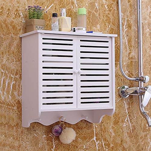 Armadietto da parete a 2 scomparti, con ante e 3 ganci per appenderlo, colore: bianco
