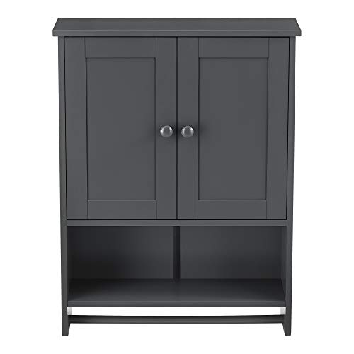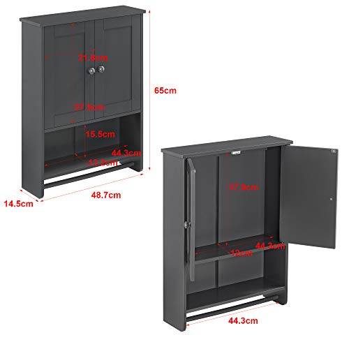 Armadietto Pensile da Bagno con Barra Portaasciugamano 65 x 48,7 x 14,5 cm Mobiletto da Muro con 2 Ante e Ripiani - Grigio Scuro