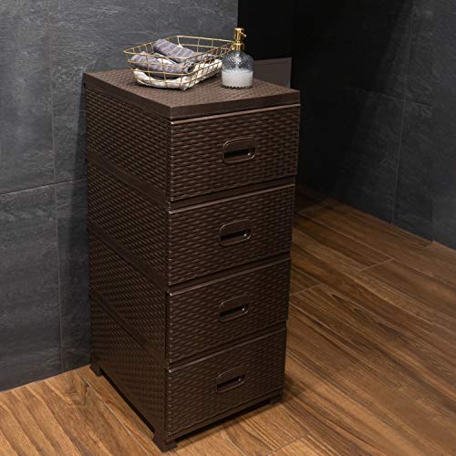 ADGO Armadietto in plastica marrone, organizer con cestini, in plastica, con 4 cassetti, 38 x 45 x 90 cm, in rattan