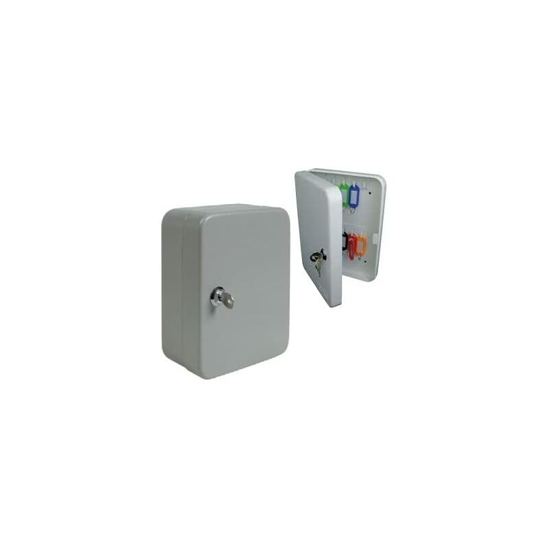 Armadietto porta chiavi con pannello centrale, per un totale di quattro superfici per riporre le chiavi. In acciaio, verniciatura epossidica a polvere. Serratura cilindro nichelato. Completa di due chiavi, adesivi con numerazione e due tasselli per il fissaggio a parete. - Dimensioni (mm): 180x250x60 - Peso (Kg): 1