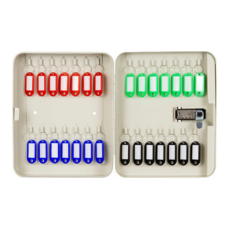 PORTACHIAVI con ganci fissi con spazio per 20 chiavi. MOLTO RESISTENTE: acciaio laccato grigio chiaro. MISURE: 200x160x60 mm (altezza x larghezza x fondo) PORTA ETICHETTE: include porta etichette identificative per chiavi e tasca per documenti GANCIO DI FISSAGGIO: ha ganci di fissaggio fissi con numeri di riferimento sulla parte superiore (con bande di numerazione) Prodotto di buona qualità< /p>