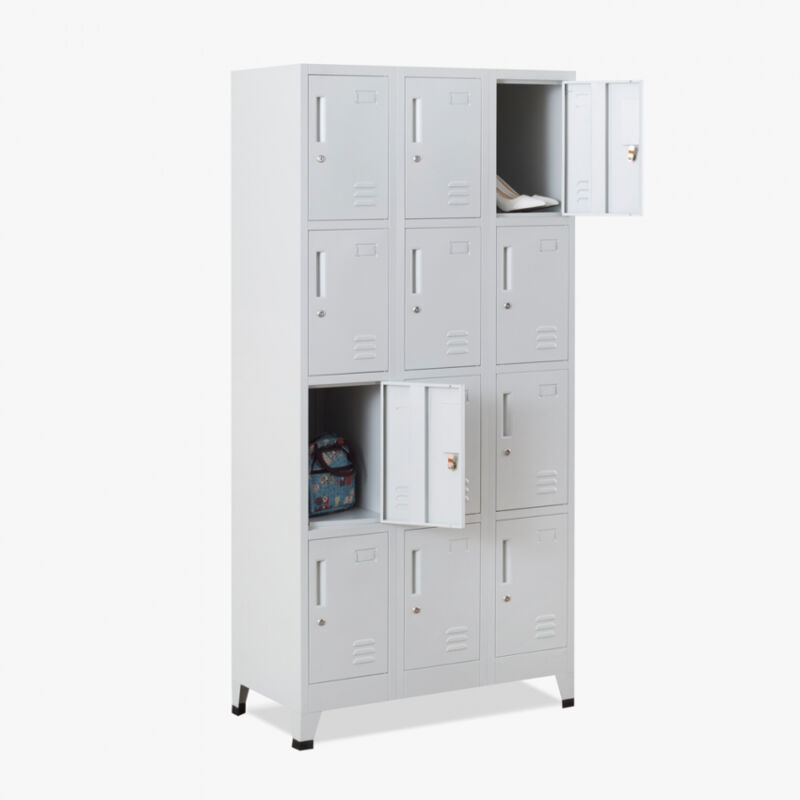 Se volete stivare in modo sicuro i documenti importanti, gli indumenti o altri oggetti di valore, l'armadietto Krakatoa Light custodirà in maniera razionale tutto l'occorrente dietro le sue robuste ante in metallo. Con la sua costruzione solida, il suo coloro grigio chiaro e i suoi 12 armadietti richiudibili con serrature a cilindro, questo armadio è progettato per essere adoperato negli ambienti collettivi come aziende, uffici, archivi, strutture sanitarie e sportive, rivelandosi utile come spogliatoio anche nei centri wellness e negli istituti scolastici. Krakatoa Light è un armadietto che si caratterizza per uno spazio di conservazione utile e flessibile: la struttura si compone di un monoblocco formato da 12 armadietti che, complessivamente, raggiungono una larghezza di 90 centimetri e un'altezza pari a 1 metro e 90 centimetri;