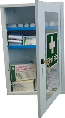 Armadietto di sicurezza di pronto soccorso con serratura a chiave e ripiani trasparenti e due chiavi, fornito vuoto