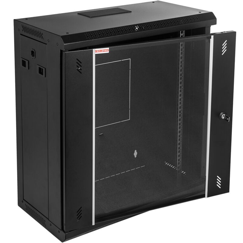 Armadio rack 19 da parete della gamma RackMatic SOHORack. Armadio da parete 12U e dimensioni esterne in mm di 600 (A) x 300 (P) x 639 (H). I rack interni sono configurabili in profondità. La distanza di la parte anteriore del rack fino al fondo dell'armadio (profondità utile) potrebbe arrivare fino a 245 mm, facendo avanzare il più possibile il telaio anteriore. Specifiche Struttura completa e con guide a cremagliera frontali da 19, regolabili in profondità per adattarsi a qualsiasi esigenza. Porta con vetro di sicurezza che le conferisce un design più accattivante e serratura a chiave. Apertura della porta a 180 gradi. Fori per il passaggio dei cavi, nel pannello superiore ed inferiore. Questi fori per il passaggio dei cavi possono essere lasciati aperti o chiusi con una copertura in plastica. Fori nella piastra posteriore per il fissaggio dell'armadio alla parete. Profondità armadio 300 mm. Pannelli laterali con sistema asportabile senza viti, per un comodo accesso laterale al