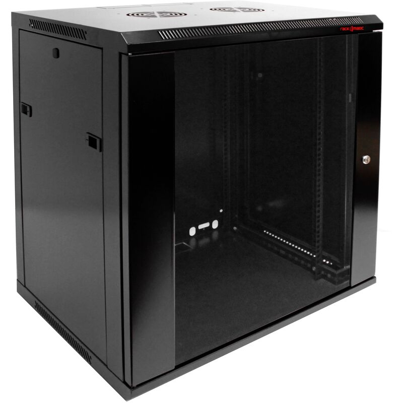 Rack Mobile 19 Wall Rackmatic SOHORack gamma. 12U armadio e la dimensione esterna murale 600 millimetri (W) x 600 (D) x 635 (H). Scaffali interni sono configurabili in profondità, anche se il valore predefinito è fornito montato ad una distanza di 315 mm fra loro. La distanza tra il telaio anteriore nella parte inferiore del mobile (sfondo utile) potrebbe essere fino a 515 mm, il massimo avanzamento telaio anteriore. Spec ificaciones Per un rack completo con 19 anteriore e posteriore, regolabile in profondità per adattarsi a qualsiasi struttura di guida esigenza. Sicurezza porta a vetri che dà un design più accattivante e serratura a chiave. L'apertura di 180 gradi porta. Fori per il passaggio dei cavi nel pannello superiore e inferiore. I fori per il passaggio di cavi, possono essere lasciate aperte ochiusa con una piastra metallica. Foratura per ventola da 12cm sul pannello superiore (ventilatore non incluso). Fori nella piastra posteriore per fissare l'armadio a muro. Profondità