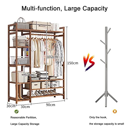 Armadio Aperto, Appendiabiti da Terra in Bambu Appendiabiti Multifunzionale con Ripiani Stand Appendiabiti, Ingresso Soggiorno Camera da Letto, Portante 150kg,120 * 30 * 150cm