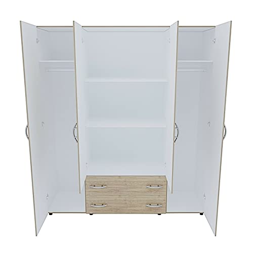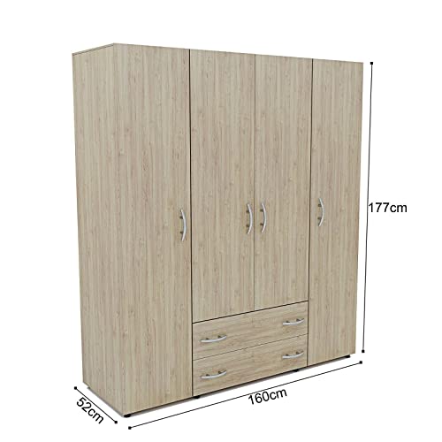 Armadio Armadietto Guardaroba Robusto Resistente Multiuso con 2 Cassetti 4 Ante Battente e Asta Appendi Abiti Brema Arredo Camera da Letto Salotto Ingresso 160 x 52 x 177 cm Colore Rovere