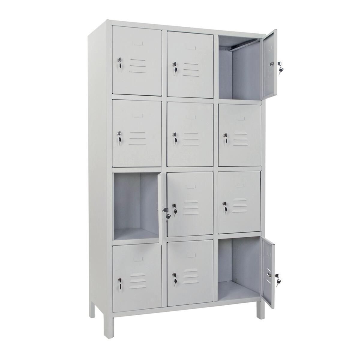 Monoblocco casellario 12 posti assemblato con appendiabiti, ripiano interno, maniglia lucchettabile, feritoie e porta cartellino