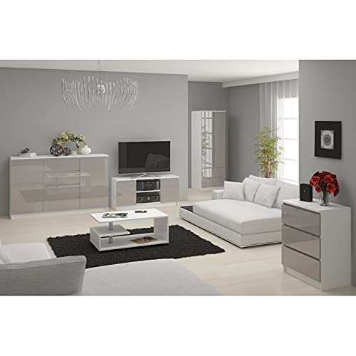 ADGO Star Armadio alto, con 2 ante e 2 cassetti, per camera da letto, armadio, versatile armadio multiuso, viene spedito in 2 pacchi, 180 x 60 x 51 cm, (lucido effetto metallico)