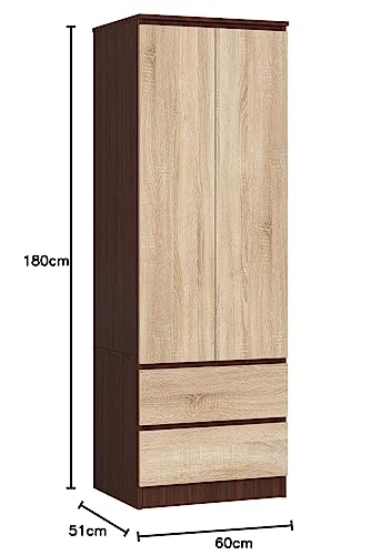ADGO Star Armadio alto, con 2 ante e 2 cassetti, per camera da letto, armadio, versatile armadio multiuso, viene spedito in 2 pacchi, 180 x 60 x 51 cm, (Venge/Sonoma)