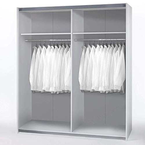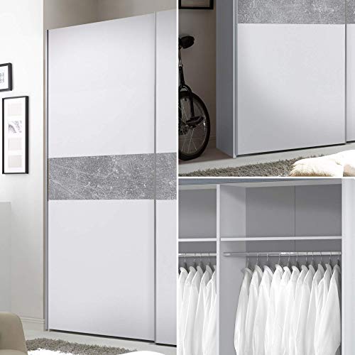 PULS, Armadio elegante con molto spazio, Armadio versatile ad ante scorrevoli di colore bianco, fascia cemento, 170 x 195 x 58 cm (larghezza x altezza x profondità)