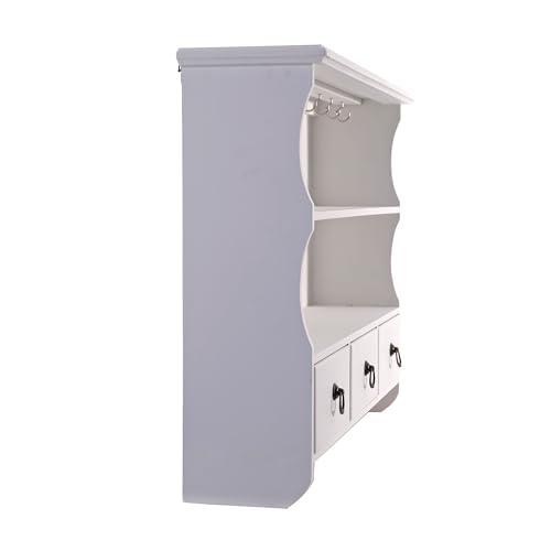 Armadio A Muro Frieda | Bianco, con cassetti e Gancio, 51 cm | Shabby Chic, scaffale pensile