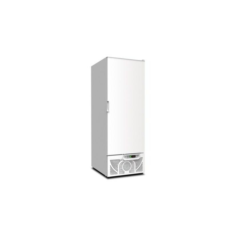 Codice RS9592 - Armadio frigorifero a 1 porta, modello MG-CHEF 600 N, dimensioni cm. 67x87.8x194.5 (lxpxh), temperatura di esercizio -10 -25 °C, 230 volt, 380 watt, 600 lt, 5 griglie dim. cm. 53x65. Mobile in lamiera preverniciata bianca. Vasca in lamiera d'acciaio bianca tratta anti-corrosione. Porta cieca con guarnizione magnetica. Sistema condensante maintenance free. Evaporatore statico (con agitatore escludibile). Termostato-termometro elettronico con sbrinamento manuale. 4 rullini unidirezionali e 2 piedini regolabili. Serratura. Disponibile anche nella versione inox (quantificazione a richiesta).