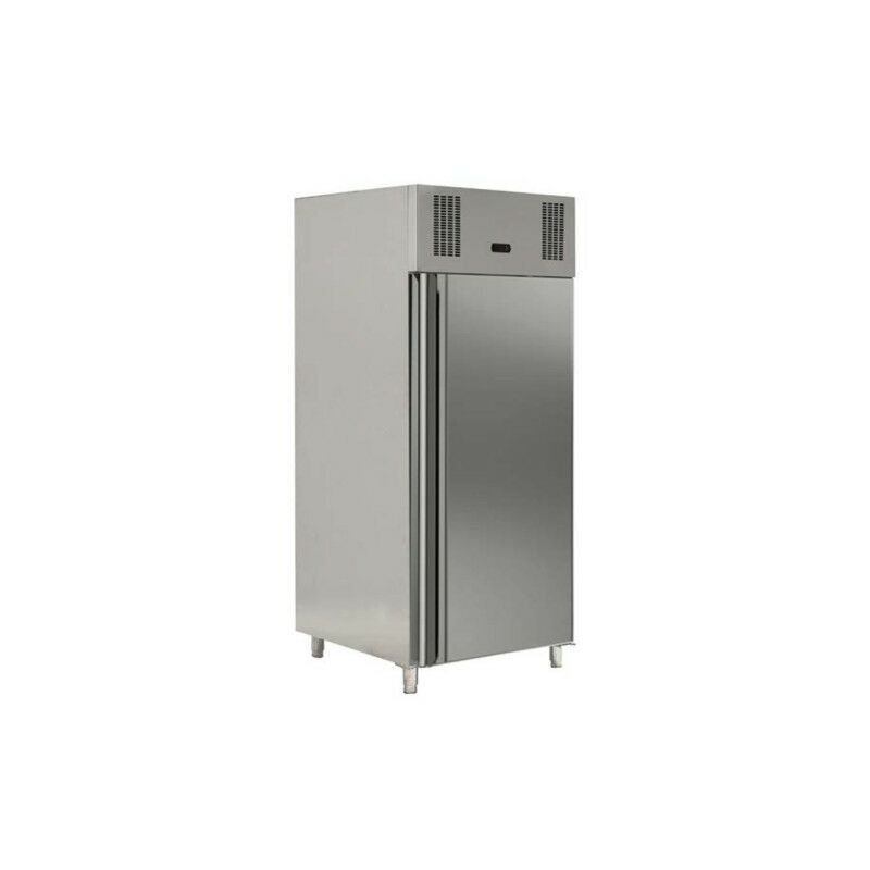 Codice RS9751 - Armadio frigorifero a 1 porta, modello FO-G-GN650TN-EC, dimensioni cm. 74x83x201 (lxpxh), temperatura di esercizio 0/+8°C, 230 volt, 305 watt, 650 lt. Dotazione interna n.3 griglie. Armadio refrigerato GN2/1 in acciaio inox. Refrigerazione ventilata. Gruppo incorporato. Evaporatore posizionato a scomparsa in modo da avere massimo spazio disponibile. Vano motore con fianchi coibentati. Controllo temperatura elettronico con termostato digitale. Resistenza elettrica intorno alla cornice porta per eliminazione della condensa. Sbrinamento automatico. Evaporazione automatica dell'acqua di condensa. Evaporatore trattato anticorrosione. Porta con molla di ritorno. Guarnizione porta estraibile senza utensili. Fondo con angoli arrotondati. Pannelli esterni di fondo e schienale in lamiera galvanizzata. Piedini in acciaio inox regolabili in altezza.