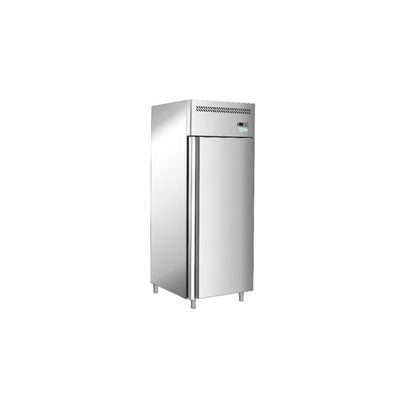 Codice RS9762 - Armadio frigorifero a 1 porta, modello FO-G-SNACK400BT-FC, dimensioni cm. 68x71x201 (lxpxh), temperatura di esercizio -18/-22°C, 230 volt, 675 watt, 429 lt. Dotazione interna n.3 griglie. Armadio refrigerato GN2/1 in acciaio inox. Refrigerazione STATICA. Ventilatore e convogliatore d'aria interno per uniformare la temperatura. Gruppo incorporato. Vano motore con fianchi coibentati. Controllo temperatura elettronico con termostato digitale. Resistenza elettrica intorno alla cornice porta per eliminazione della condensa. Sbrinamento manuale. Eliminazione dell'acqua di condensa tramite bacinella. Porta con molla di ritorno. Chiusura porta con chiave. Guarnizione porta estraibile senza utensili. Fondo con angoli arrotondati. Pannelli esterni di fondo e schienale in lamiera galvanizzata. Piedini in acciaio inox regolabili in altezza.