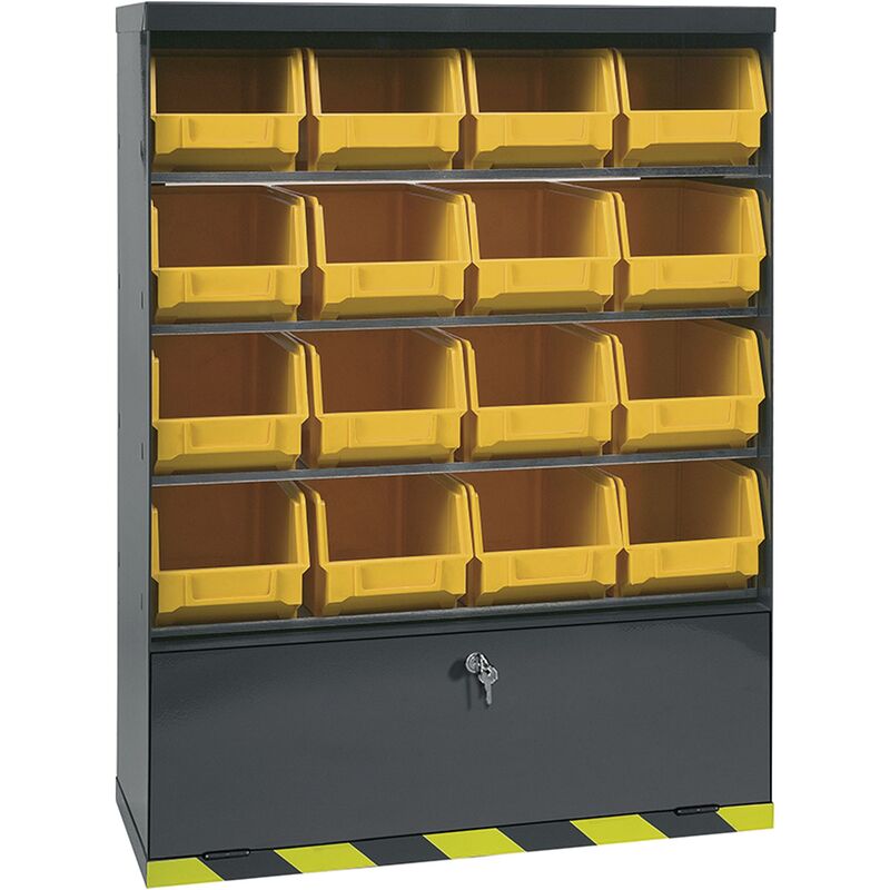 Armadio metallico, L 603 x P 247 X H 800 mm con 16 contenitori di polipropilene arte.103 Armadio metallico pratico. Con questo armadio, i problemi di spazio sono stati risolti. Avere tutto in ordine e non perdere tempo a cercare un prodotto/strumento con questo armadio. Composizione: polipropilene Dimensioni: 60.3x24.7x80cm Colore nero