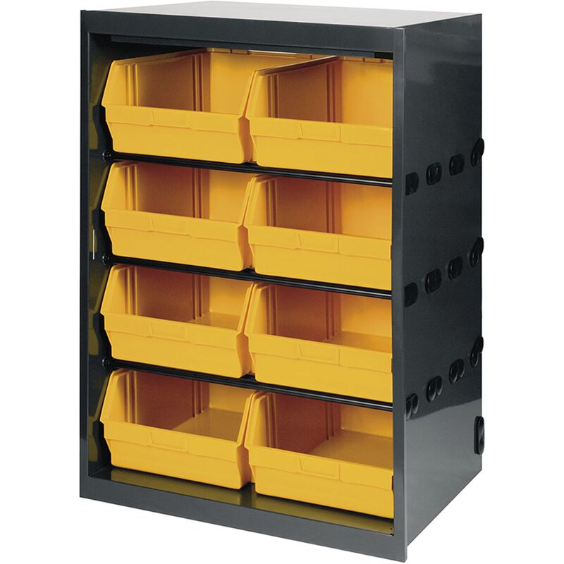 Armadio metallico, L 660 X P 490 X H 950 mm con 8 contenitori in polipropilene arte.105 Armadio metallico. Con questo armadio, i problemi di spazio sono stati risolti. Avere tutto in ordine e non perdere tempo a cercare un prodotto/strumento con questo armadio. Composizione: polipropilene Dimensioni: 66x49x95cm Colore: nero/giallo