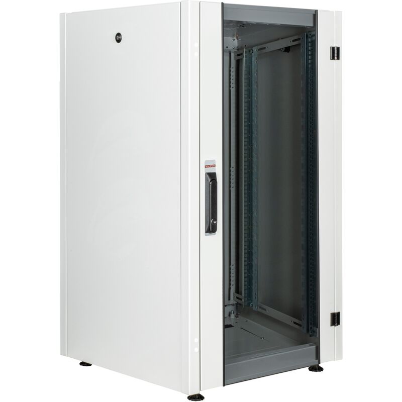 RackMatic MobiRack Armadio rack da terra 19 con altezza 22 U. Dimensioni esterne 600 mm (larghezza) x 600 mm (profondità) x 1081 mm (altezza) (dimensioni del mobile senza rotelle e piedini di livellamento). Realizzato in acciaio laminato a freddo di alta qualità con grado DC-01, 6112 o 7122 e conforme alla norma EN 10130, verniciato di bianco (RAL7035). Armadi rack forniti smontati. Caratteristiche professionali e adatte ad assemblare sale server montate su rack da 19”, in quanto possono essere collegate lateralmente con i kit di unione ad esse dedicati (#RB060 e #RB061). Specifiche Rack da 19 pollici della gamma RackMatic MobiRack di alta qualità. Dimensioni armadio (larghezza x profondità x altezza): 600 x 600 x 1081 mm. Opzionalmente, le ruote possono essere installate per spostarle facilmente. I telai dei portapacchi anteriore/posteriore da 19” sono regolabili in profondità, in quanto sono montati su binari che ne consentono lo spostamento. Spessore profili rack, 1,5 mm.