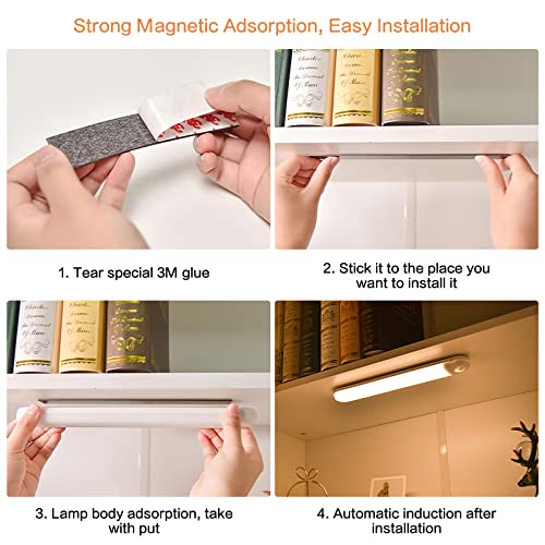 Risparmio energetico: luci ricaricabili sotto l'armadio con batteria ricaricabile integrata da 800 mAh, è facile da caricare tramite il cavo di tipo C incluso, molto comodo da caricare dal laptop, caricabatterie, powerbank. Dopo una carica completa in 1-2 ore, può funzionare continuamente per 5 ore in modalità sempre attiva e utilizzato continuamente per 1-2 m