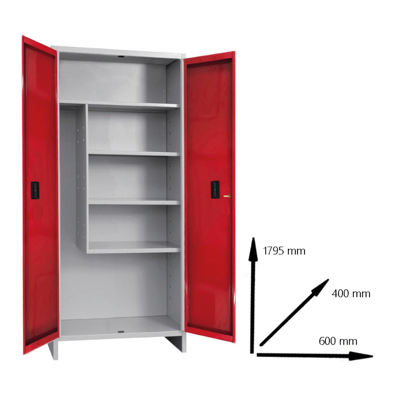 Porta scope da 60 componibile con cerniere interne antiscasso e ripiani antitaglio. RAL 3000. Completo di serratura e piedini in metallo