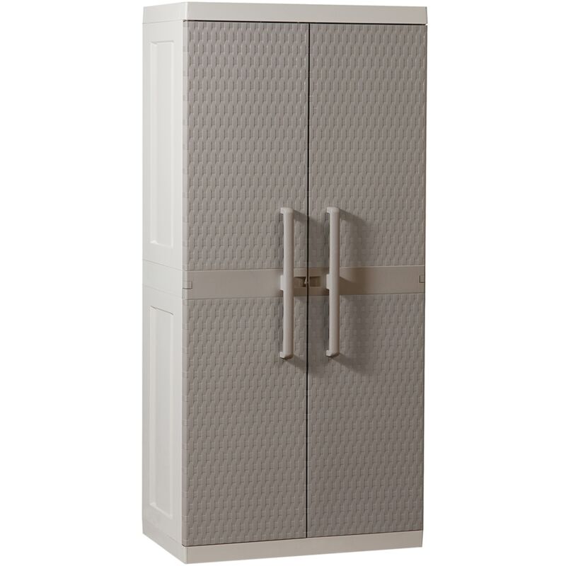 Armadio a 2 ante con vano porta-attrezzi e 4 ripiani posizionabili a diverse altezze Mobile a 2 ante con 2 ripiani posizionabili a diverse altezze. Caratteristiche Principali Finitura effetto rattan Per interni ed esterni Predisposizione con chiusura lucchetto Portata max per ripiano 50 kg Tempo di montaggio 15 minuti con attrezzi Dimensioni 89x54x190cm