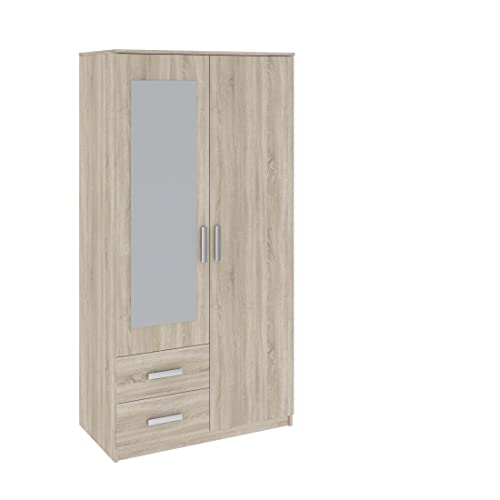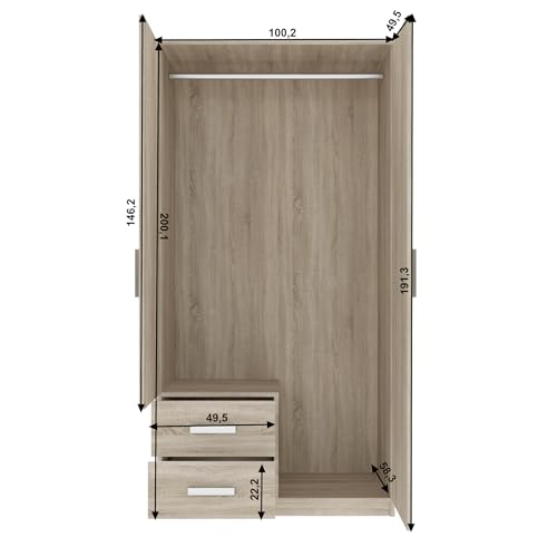 Oggi Sara Armadio a due ante SARAVENA con due cassetti Larghezza 100 cm Design moderno e minimalista in laminato per sorno, camera da letto, studio Colore rovere