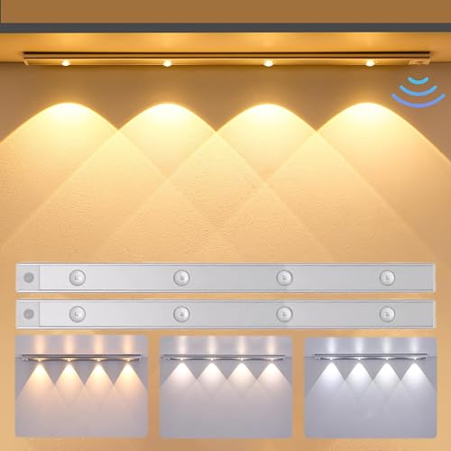 [COLORE E LUMINOSITà REGOLABILI] Questo Luce Armadio LED con Sensore di Movimento, luce led armadio dell'armadio incorporano LED. Le luci armadio possono facilmente cambiare tra 3 colori di led armadio e diverse intensità luminose in base alle tue esigenze.Le nostre luce led sensore movimento possono soddisfare le tue diverse esigenze.
