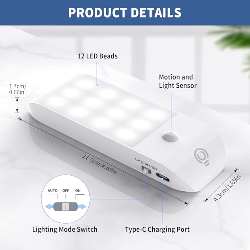 [LUCE MORBIDA E UNIFORME]: Ogni luce notturna ricaricabile di tipo C ha 12 LED, fornisce una confortevole luce bianca calda da 4000K, la luminosità è di 180 lumen, che può illuminarti di notte evitando di accendere le luci principali.