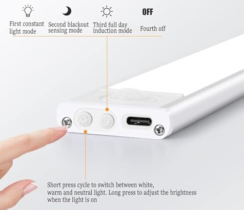 XUBX Luce Armadio LED con Sensore di Movimento,Led Sottopensile Cucina con Controllo del Sensore Touchless,3 Luce Notturna Che Cambiano Colore Dimmerabile Luce Armadio Per Armadi, Corridoio Garage