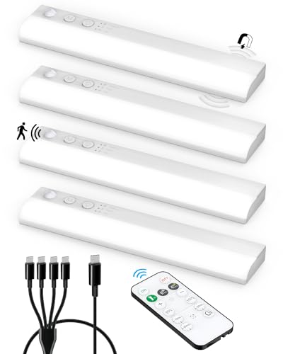 Luci Armadio LED con Sensore Ricaricabile USB, Barra LED Sottopensile con Telecomando Senza Fili Lampada Magnetica da Cucina Luce Notturna Sensore Movimento per Interne Scale Sotto Mensola Letto