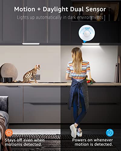 ✅【Modalità Sensore Automatico】Se state cercando una migliore illuminazione in casa o una navigazione più facile di notte, questa luci armadio led con sensore ricaricabile può fornire una maggiore visibilità ogni volta che ne avete bisogno. La barra led armadio con sensore ha un interruttore che può essere impostato su sempre acceso o sensore di movimento o spento. In modalità AUTO, la barra led sottopensile ricaricabile rileva il movimento entro un raggio di 3m/120° e si accende solo di notte.