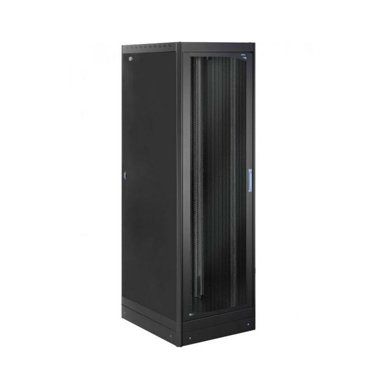 Armadio Server Rack 19'' 600x1200 42U Nero Serie Lite Porta Grigliata Solido armadio rack a pavimento caratterizzato da una struttura robusta con montanti 19†da 2 mm di spessore e angolari innovativi da 3 mm di spessore e base rinforzata. Alla robustezza della struttura si unisce il design innovativo e moderno, che non trascura la praticità nell installazione. Infatti, utilizzando una semplice chiave, l’armadio può essere montato e smontato facilmente, permettendo quindi di effettuare un’installazione veloce. Questa rapidità di montaggio è garantita dalle cerniere a sgancio rapido presenti sulla porta anteriore e dalle serrature “ad un quarto di giro†presenti sui pannelli. Altre caratteristiche fondamentali come la porta reversibile, i pannelli laterali e posteriori amovibili, la doppia coppia di montanti, il fondo che a discrezione può essere mantenuto chiuso o aperto per favorire il ricircolo d’aria, rendono, insieme all ampia gamma di accessori proposti, questi armadi