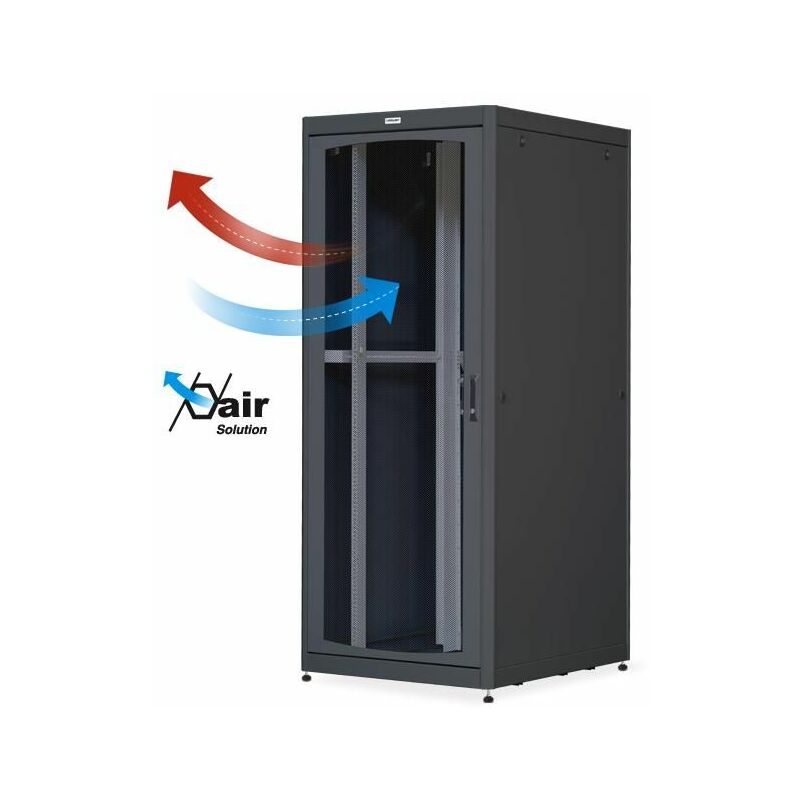 Gli armadi AIR SOLUTION sono progettati da INTELLINET per rispondere all esigenza di realizzare un ottima ventilazione interna, viene garantito un flusso d aria che permette di espellere il calore dannoso che si accumula all interno dell armadio. Solido armadio rack a pavimento caratterizzato da una struttura robusta con montanti 19” da 2mm di spessore e angolari innovativi da 3 mm di spessore e base rinforzata. Alla robustezza della struttura si unisce il design innovativo e moderno, che non trascura la praticità nell'installazione. Infatti, utilizzando una semplice chiave, l'armadio può essere montato e smontato facilmente, permettendo quindi di effettuare un'installazione veloce. Questa rapidità di montaggio è garantita dalle cerniere a sgancio rapido presenti sulla porta anteriore e dalle serrature “ad un quarto di giro” presenti sui pannelli. Altre caratteristiche fondamentali come i pannelli laterali amovibili, la doppia coppia di montanti numerati, il fondo che a discrezione
