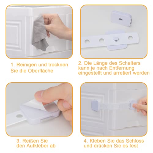 Sicurezza per bambini multifunzionale: le cinghie in plastica regolabili in lunghezza possono essere aperte e chiuse sull'armadio scorrevole. Assicura in modo affidabile armadi, frigoriferi, forni, servizi igienici, porte, finestre, comò, fornelli, lavatrici, asciugatrici, pattumiere, ecc.