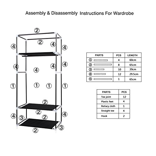 HST Mall, armadio a singola anta in tela e legno con barra appendiabiti, accessorio per camera da letto, soluzione salvaspazio, dimensioni 174 x 69 x 43 cm (l x p x h), vari colori Blace