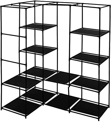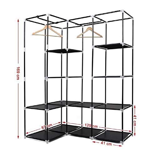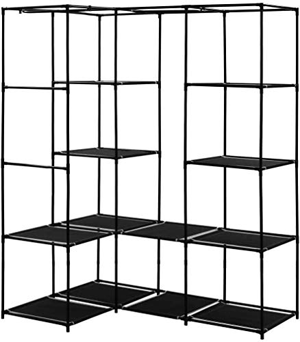 Armadio in Tessuto, Guardaroba Portatile,Forma a L Armadio Pieghevole, Armadio Componibile ad Angolo, Acciaio, Tessuto, plasticaAppendiabiti, Pieghevole,169 * 129 * 87cm,Nero