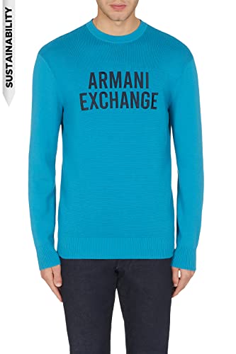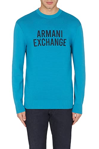 ARMANI EXCHANGE Front Extended Embroidered Logo Maglione, Mosaico Blu, S Uomo