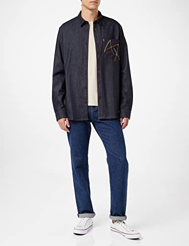 ARMANI EXCHANGE, Front Pocket, Embroidered Logo, Long Sleeves Camicia, Denim Indaco, XL Uomo