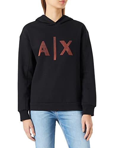 ARMANI EXCHANGE Hoodie with Maxi Logo on Front Felpa con Cappuccio, Nero, M Donna