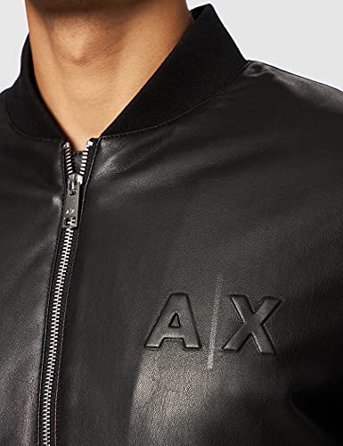 Armani Exchange PU leather jacket. Logo on chest. Big mirrored logo on back. Tone sur tone. Two pockets. Double zip, Jacket, Uomo, Nero, XS